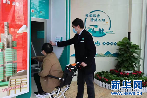 图为农行贵州省分行员工贴心引导老年客户办理业务。新华网发