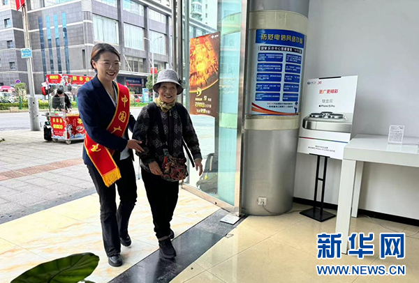 图为贵州省广电网络公司员工全程引导、陪同老年人。新华网发