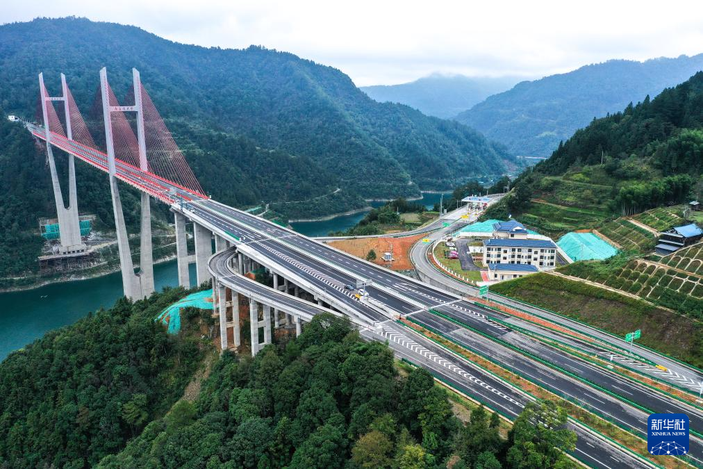 这是10月20日拍摄的贵州剑黎高速南孟溪大桥和南加互通(无人机照片)。新华社记者 杨文斌 摄