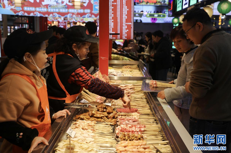 3月14日,贵阳青云路步行街“青云不夜城”内游客正在挑选烧烤食材。新华网发(石建生 摄)