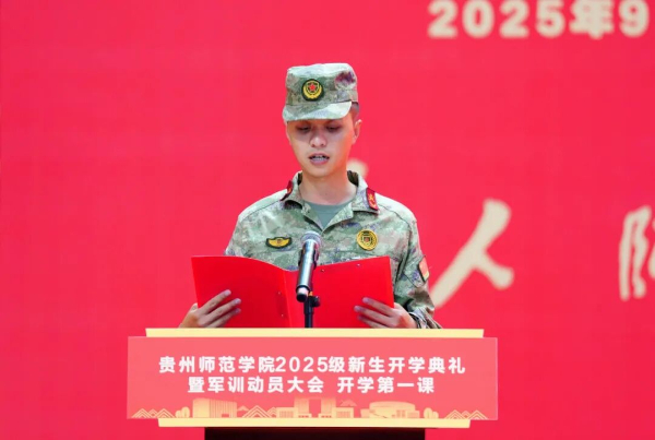 教育是一场温暖的修行,是用生命影响生命,用智慧点燃梦想。教师代表、教务处处长、创新创业学院执行院长杜宏博教授,贵阳市南明小学校长、贵州省优秀教师、优秀校友唐银乔,在校生代表、创新创业学院2022级学生段迪,新生代表、数学与大数据学院2025级李昱霏及军训教官代表、乌当区人武部朱垚睿依次发言。