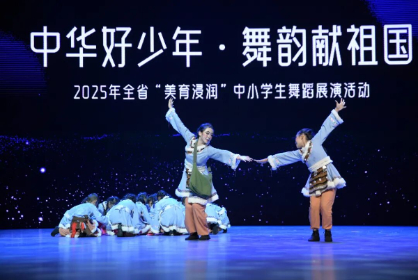 9月28日,以“中华好少年·舞韵献祖国”为主题的2025年全省“美育浸润”中小学生舞蹈展演活动在贵阳大剧院启幕。来自全省各地的84支中小学生队伍齐聚一堂,以舞会友,以赛促学,用昂扬的精神面貌和灵动的艺术表达,献礼祖国,展现新时代贵州少年的蓬勃风采。