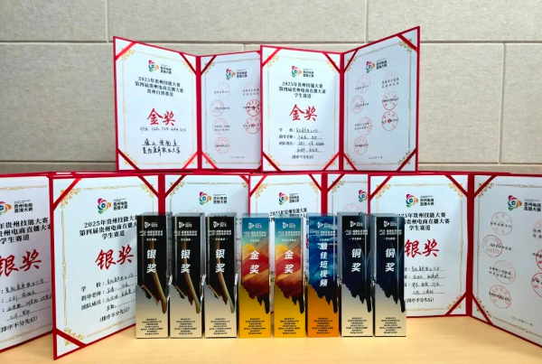 11月5日至6日,贵州省商务厅、贵州省互联网信息办公室、共青团贵州省委、贵州省妇女联合会、贵州省人力资源和社会保障厅、贵州省教育厅、贵州省农业农村厅等7个部门联合主办的2025年贵州技能大赛第四届贵州电商直播大赛决赛在贵州电子商务职业技术学院举行,学校康养产品开发与新媒体营销微专业师生再创佳绩,斩获众多奖项,连续两届赛事获奖数量居全省第一,充分彰显了学校职业教育高质量发展的蓬勃活力。